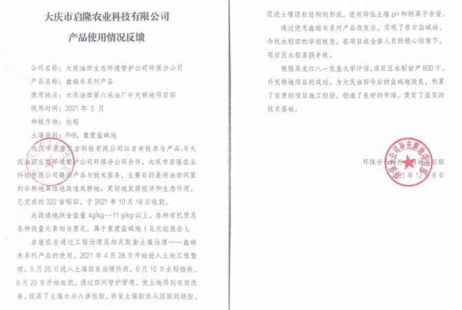 與多所高校、研究院、各大種業(yè)企業(yè)合作種植改良鹽堿地水稻。在黑龍江、吉林、內(nèi)蒙古等地有多處示范基地。在新疆等地區(qū)種植草木,環(huán)境綠化等工程。幾年來,啟隆人大力弘揚“創(chuàng)新、堅韌、拼搏、開拓”的企業(yè)精神,在研發(fā)上勇攀高峰。大慶啟隆 的企業(yè)宗旨是“誠信于鹽堿地的朋友,服務于鹽堿地的朋友”,努力為鹽堿地改良做出積極的貢獻。